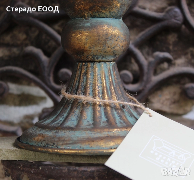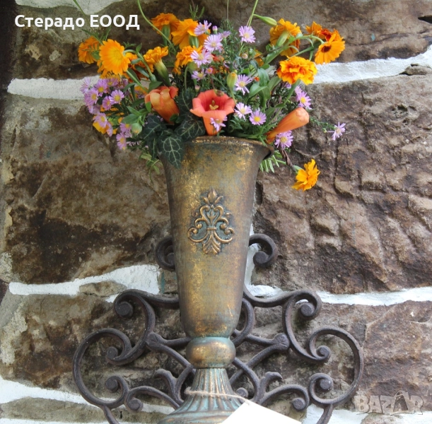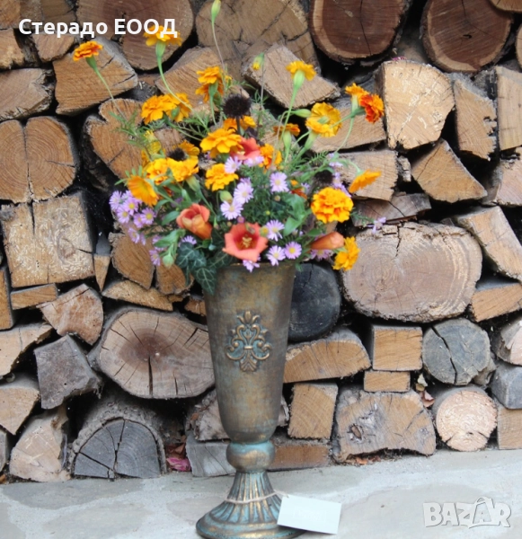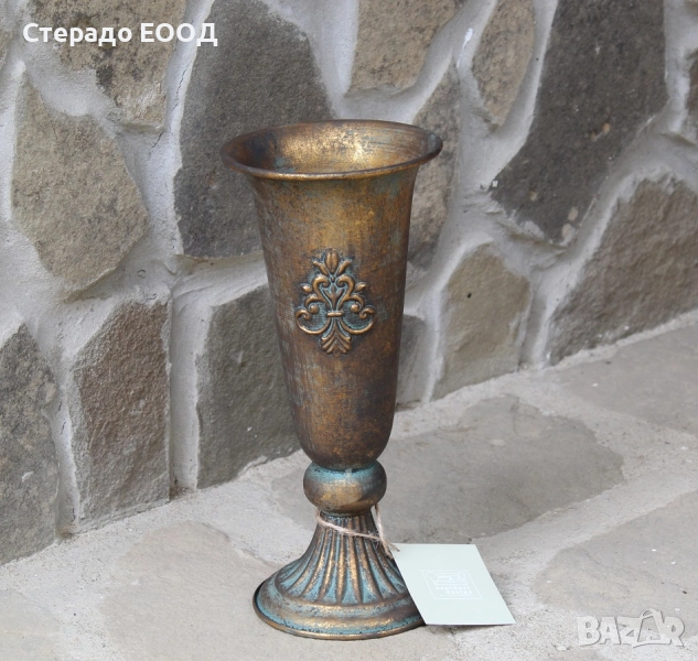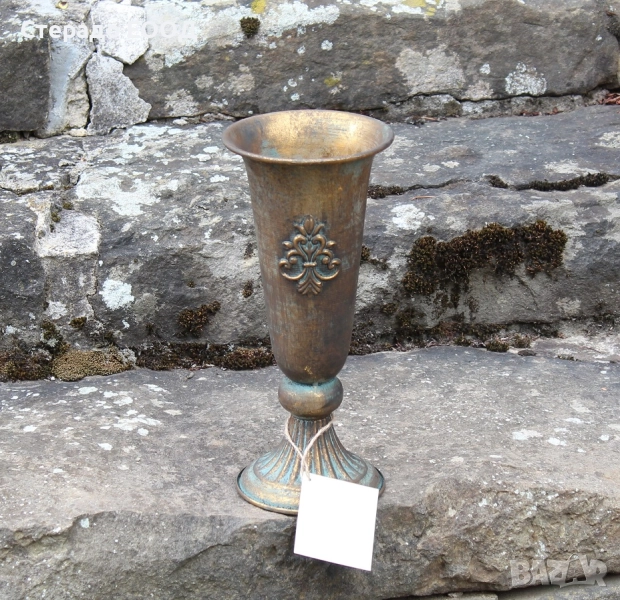 Декоративно патинирана желязна ваза с височина от 28 см и диаметър при