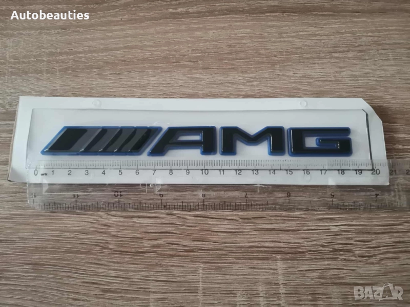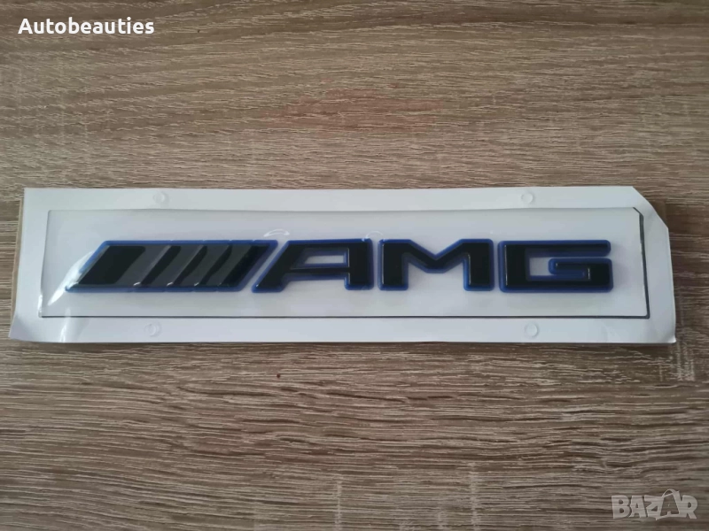 Нов надпис AMG в черно със син кант за всички модели Mercedes Benz. Размерите са дадени на снимките.