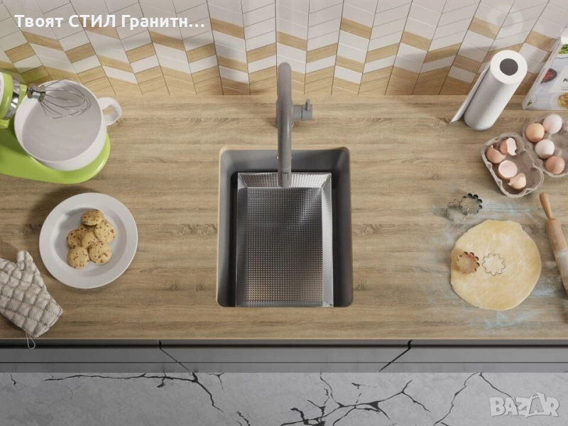Нашите мивки са изработени от висококачествена немска смес от гранитен кварц и специална смола. Най-добрите компоненти и висококачественият производствен процес правят нашия продукт труден за обезцветяване, устойчив на надраскване и температурни промени - просто устойчив на кухненски приключения! Предоставяме 35 години гаранция на нашите мивки - най-дългата гаранция на пазара.