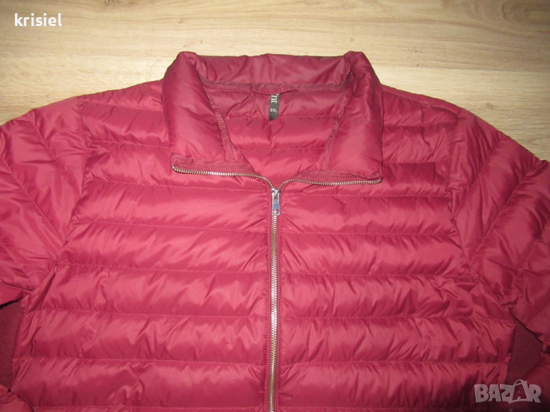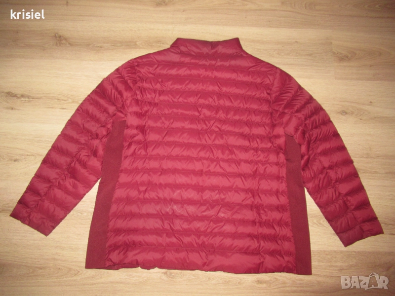 Якето е ново.Номер 3XL.Много хубаво олекотено.Изцяло с пълнеж от гъши пух-не запарва и не изпотява.Джобовете са с ципове.Есенно моделче.Размерите са:дължина-70см,гръдна обиколка-144-150см,ханш-146/152см,от рамо до рамо-48см,ръкав от рамо-63см