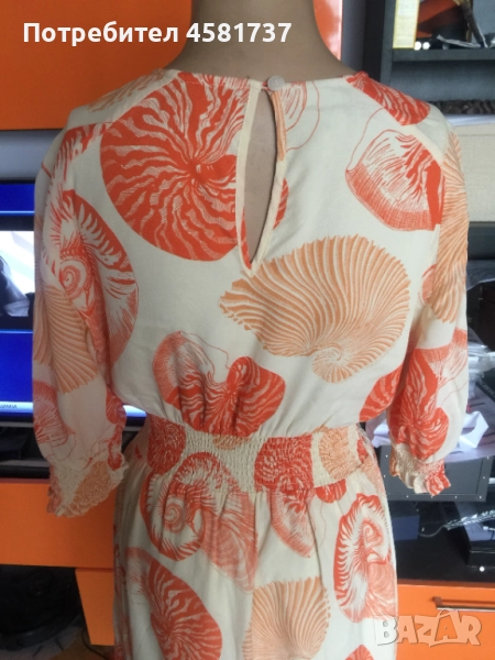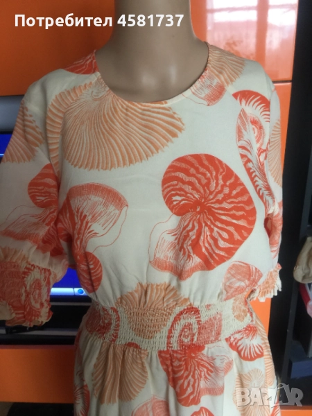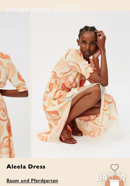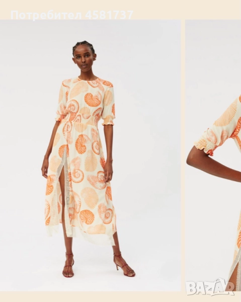 Много красива,ефектна и феерична рокля на скандинавския бранд Baum und Pferdgarten. Десенът е морски с рапани и миди, но решен в по-различни от традицонните морски тонове в син цвят.
