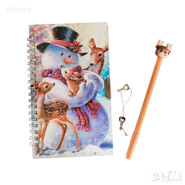 6133 Подаръчен коледен тефтер таен дневник с химикалка и ключе