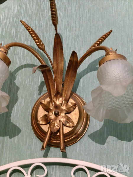 Лот полилей и аплик Стара ръчна изработка от желязо помеднено .Полилея е дължина 89 см диаметър 50 см Аплика е висок 35 широк около 40 см .Без забележки .НЕ се продават отделно Предпочитам лично предаване с Еконт след капаро.Цената НЕ полежи на коментар