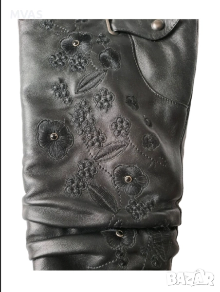 Нови луксозни дамски зимни черни ботуши изцяло от естествена кожа и отвътре и отгоре