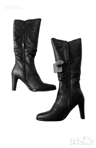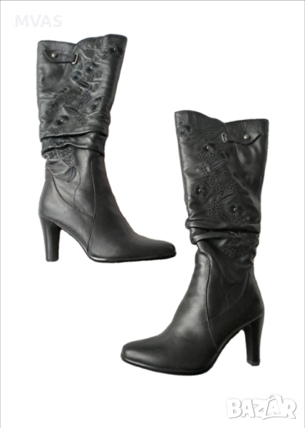 Обувки от естествена кожа, дамски ботуши естествена кожа, дамско зимно ботуши на ток, дамски черни ботуши