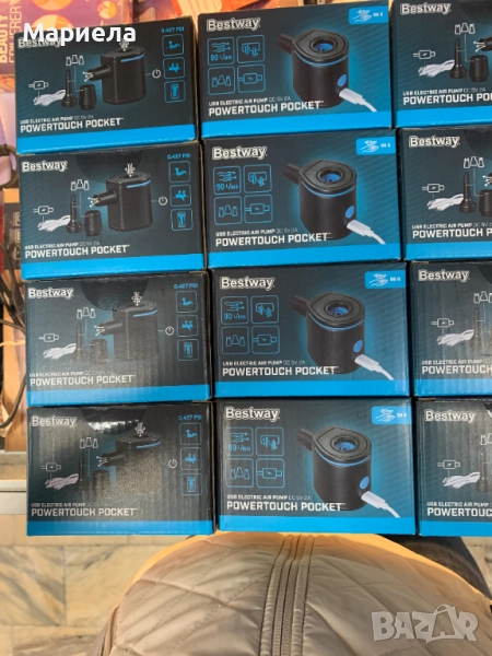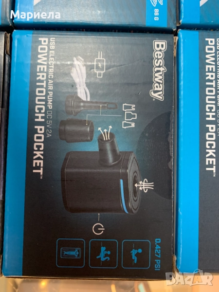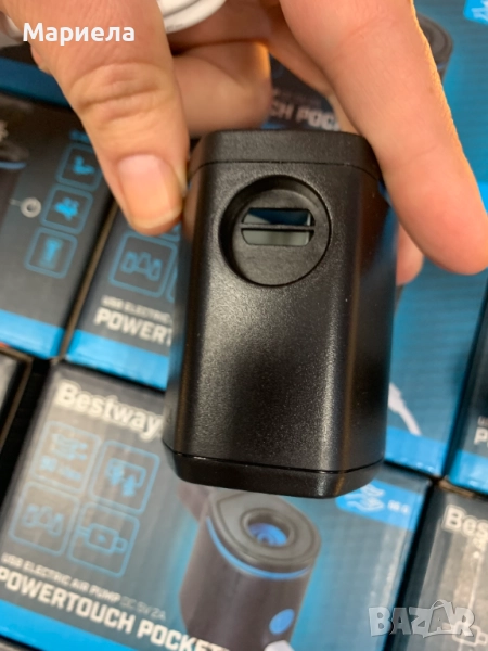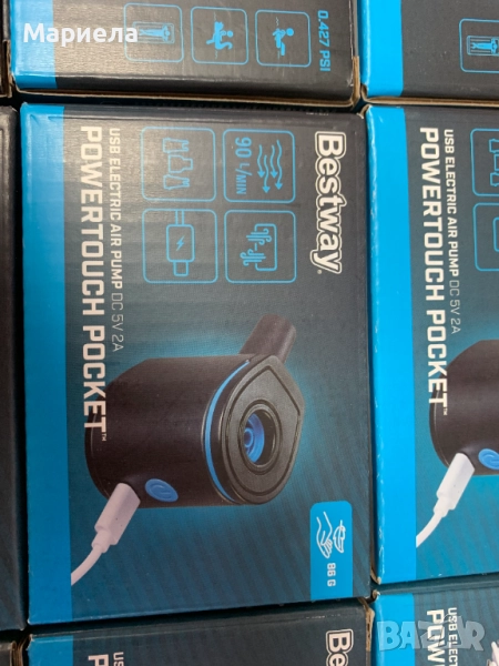Джобната въздушна помпа PowerTouch предлага впечатляващия въздушен поток от 90 л/мин и може да надува или изпуска широка гама от предмети, включително малки играчки за басейн, постелки за къмпинг и други, за максимално удобство.