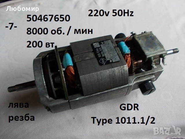 7. Ел.мотор 220v 50Hz 200w 8000 об/мин GDR - използвано - 45 лв.