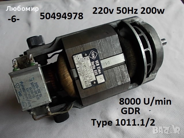 6. Ел.мотор 220v 50Hz 200w 8000 об/мин GDR - използвано - 45 лв.
