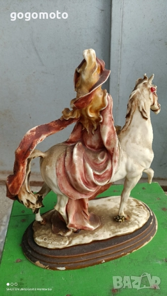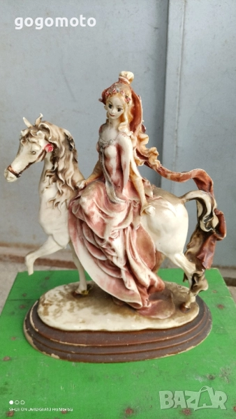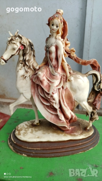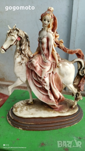 Статуетка принцеса и кон, отзад е датирана и подписана, вероятно е от поляризин. Тежка и масивна е. Основата е дървена.