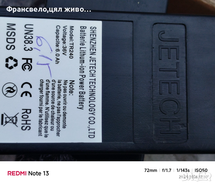 Нова тествана батерия 36 волта 6 ампера за електрически велосипед колело скутер тротинетка → Обява 51880562