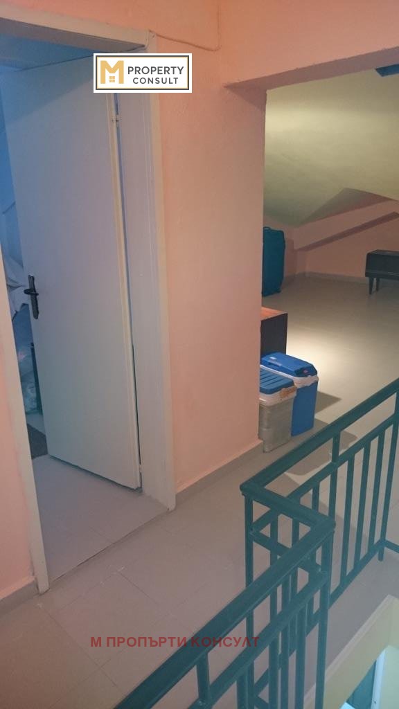 Продава мезонет 123 кв.м чиста площ без общи части, без терасите. Две нива: 1 ниво-дневна с трапезария от 50 кв.м. с голяма тераса, спалня с голяма тераса, антре, баня с вана, перално и тоалетна поотделно, има възможност за изграждане на още две стаи.Второ ниво-две стаи, санитарен възел.Има мазе и 2 склада на 5 и 6 етаж. Последен етаж с асансъор.В близост до училища на 200 метра - Строителен техникум, Езикова гимназия, Спортно училище, Техникум по химия и Учителски институт, УМБАЛ Втора Клинична База на 500 метра, ШЗО. Сградата е газифицирана. Спирка нова линия на тролейбус на 20 метра.