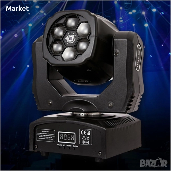 Преносими LED сценични светлини с движеща се глава и управление (6x12W + лазер) Гаранция 12м.