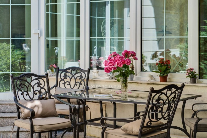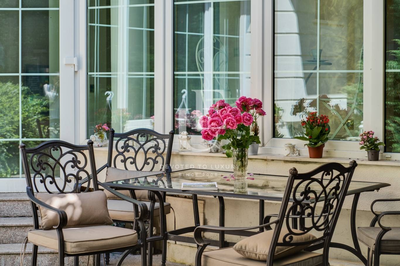 Красива, аранжирана градина, подходяща за събития и приеми, с различни зони, барбекю, с възможност за басейн, изграден подход за паркиране повече от шест автомобила, изключително елегантна и скъпа фасада, масивна ограда от ковано желязо. Ref. ID:20507