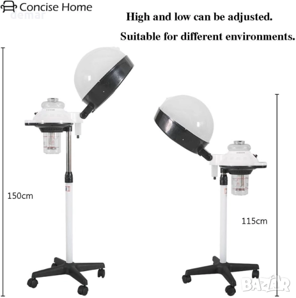 Тази професионална машина за коса с пара е предназначена за употреба в салон или у дома, като помага за кондициониране и подхранване на всички типове коса, като същевременно поддържа скалпа чист и здрав. Тя позволява на влагата, маслата и продуктите да проникнат дълбоко, подобрявайки мекотата на косата и грижата за скалпа. Машината разполага с бутилка за вода с горно пълнене за лесно пълнене, съд за събиране на капки, двойни настройки на мощността (400W/750W) и 60-минутен таймер за гъвкава работа. Регулируемият капак с дължина 35 см може да се накланя на 90°, с отвори за контрол на парата, а височината може да се регулира между 115–150 см. Оборудвана с четири колела за мобилност, вграден предпазен термостат, който се изключва, когато е празен, и 1,5 м кабел със стандартен британски трипинов щепсел, тя гарантира както удобство, така и безопасност.