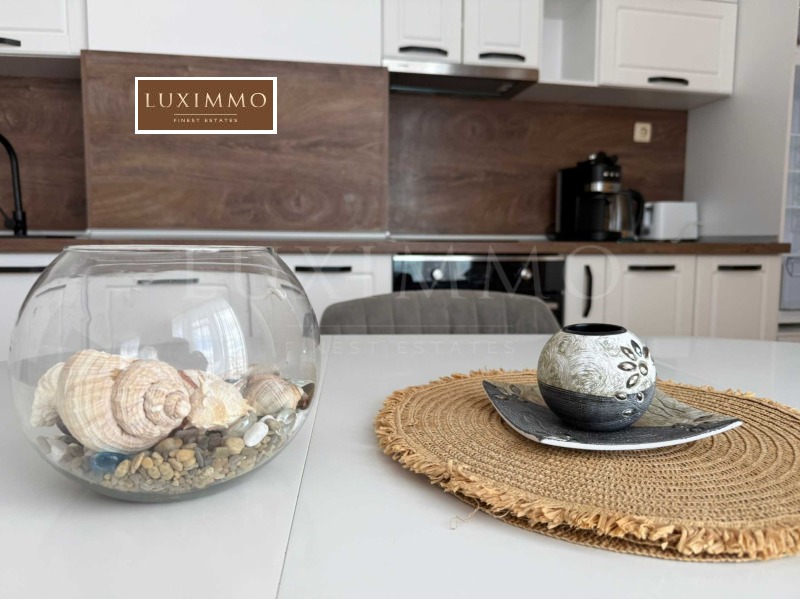 Към апартамента има прилежащи 90 кв.м идеални части от поземления имот, върху който е построен комплекса. Напълно обзаведен и оборудван е с всичко необходимо за живееене като мебели и ел. уреди.