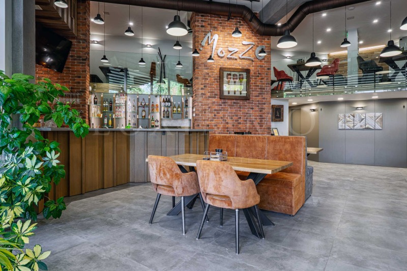 Разполага с елегантен бар, изграден като централна точка на първото ниво удобен, с присъствие и стил.