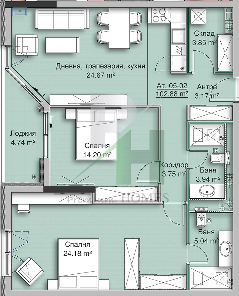На една от най-престижните и удобни локации в София Ви очаква завършена сграда с Акт 16 съчетание на модерен дизайн, стил и функционалност. Проектирана с внимание към детайла и използване на висококачествени материали, тя предлага светли и просторни жилища с уникални панорамни гледки към града и Витоша, които се разгръщат от всяка стая. Френските прозорци подчертават усещането за пространство и осигуряват изобилие от естествена светлина.Сградата е с вентилируема фасадна обшивка от алуминиеви композитни панели ALPOLIC A2, алуминиеви профили Schüco за прозорци и врати и дизайнерска входна врата Solid по индивидуален проект. Отоплението е решено с подово отопление REHAU с допълнителна изолация, което гарантира комфорт и енергийна ефективност.За спокойствието на обитателите са осигурени контролиран достъп, жива охрана и видеонаблюдение 24/7. Сградата разполага с две напълно отделени фоайета жилищното с рецепция и зона за изчакване, офисното със самостоятелна рецепция и зона за изчакване. На партерно ниво е обособена кафетерия с директен достъп за клиенти.Това е място, където качеството на строителство, комфортът и престижът се срещат в една модерна градска среда, а всяка сутрин започва с простор, светлина и гледка, която вдъхновява. Разпределението на имота е:дневна с кухня, две спални, две бани с тоалетна, гардеробна, мокро помещение, тераса с гледка към Витоша.