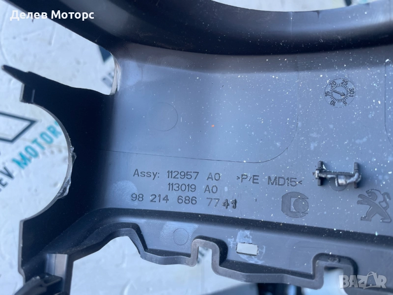 9821468677 интериорна пластмаса около волана от Peugeot 508 GT, 1.5 BlueHDI, двигател YHZT-C2B800, 10 Q4EP, DV5RC, STT 8-SPEED automatic, 131 кс., 63 000 km., 2022, euro 6, Пежо 508 ГТ, engine YHZT-C2B800, 10 Q4EP, ск. кутия STT, 1.5 БЛУХДИ., 131 hp., 2022г., 63 000 км., автоматик, евро 6 в автоморга Delev Motors, между с. Каменар и с. Куманово гр. Варна.