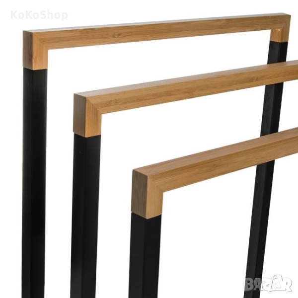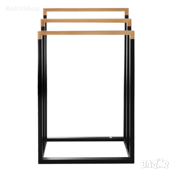 Практична и функционална стойка за кърпи. Стойката е с три разделения за поставяне на кърпи от бамбук,като всяко е с различна височина,съответно 66 см.– 71.5 см. – 75 см. Конструкцията е от метал.