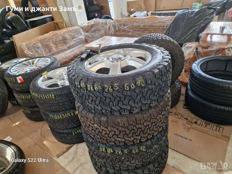 Обявената цена е за 4бр гуми +Джанти. BF GOODRICH 265 60 18 DOT 16 G 18 5X130 Разполагам и с 1бр гума +джанта 300лв с Гуми 265 60 18 10броя Mercedes Made in Austria За повече информация и снимки Склад за Гуми и джанти Замъка Ямбол