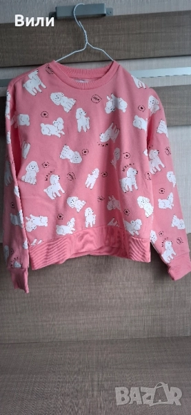 3. Комплект с розова дебела блуза /164, облечава 1-2 пъти/ и НОВ блестящ клин с интересни крачоли /164/