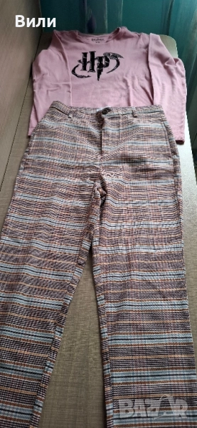 2. Комплект с кариран панталон / Reserved , 164/ и розова блуза на Harry Potter /WB, Reserved, 164/- обличани блоени пъти