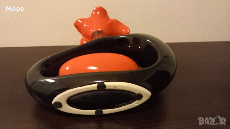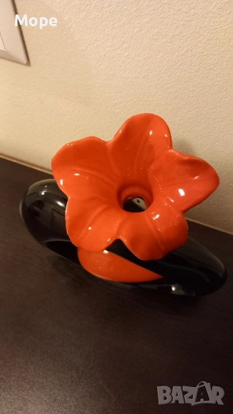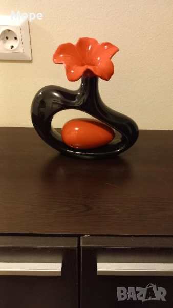 Керамична ваза с височина 22 см. с черен и червен цвят. Отлично състояние без пукнатини и драскотини