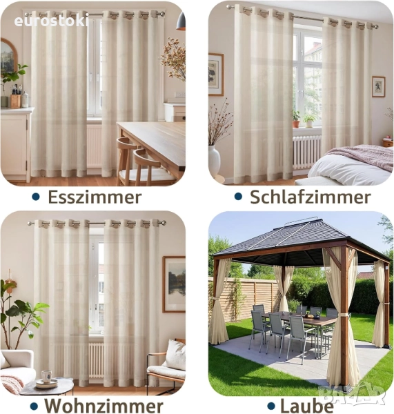 Материал: Завесите са изработени от лесен за поддръжка полиестер. Материята е много мека на допир и създава светла и приветлива атмосфера в стаята.