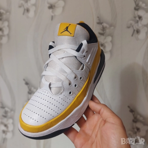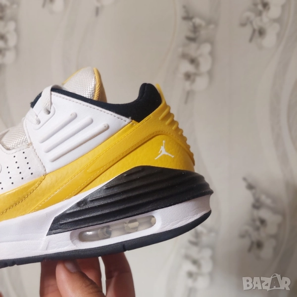NIKE JORDAN Max Aura 5 е модерна маратонка, вдъхновена от класическите AJ3, и се отличава със свеж външен вид. Тя съчетава издръжлива кожа с текстил за здрава, но гъвкава конструкция. Видимите възли Nike Air в петата осигуряват леко и ефективно омекотяване, което ви позволява да ходите, бягате или карате кънки удобно през целия ден. Гумена подметка с кръгъл модел осигурява добро сцепление върху различни повърхности. Здравата пластмасова зона около петата осигурява допълнителна опора и сигурност по време на всяко движение. Идеална за ежедневно носене и спортни дейности, дизайнът на маратонката съчетава модерен комфорт с класически стил.