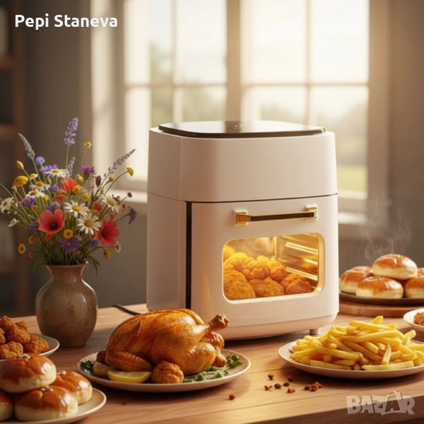 С AirFryer можете да приготвяте пържени картофи, месо, риба, зеленчуци или дори сладкиши – всичко с минимално количество мазнина и максимално вкус.