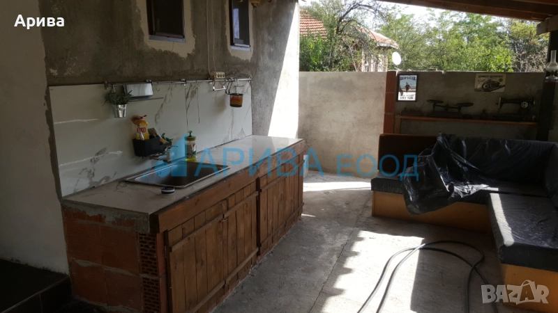 Самата къща е с обща разгърната застроена площ от 132 м2 като на първия етаж се намират обзаведена кухня с всички необходими уреди / в това число голяма професионална готварска печка на газ и електричество./, просторен хол, баня с тоалетна и антре с вътрешни стълби към втория етаж. Там са разположени две спални помещения и много голяма тераса с панорамна гледка към хълмовете извън селото. На партера пред входа е направена веранда с кухненска част и външна чешма за лятно ползване и посрещане на гости.