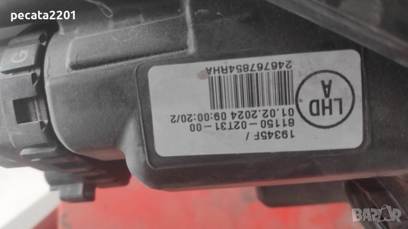 Прoдавам - оригинален ляв фар за Тойота Корола (Toyota Corolla) 2019 г. Фара има сурнато на стъклото, което може да се заличи с по упорито полиране, корпуса е здрав, има едно счупено краче - горе към калника (на снимките се вижда). Оригиналния номер е 8115002T31. Цена - 380 лв.