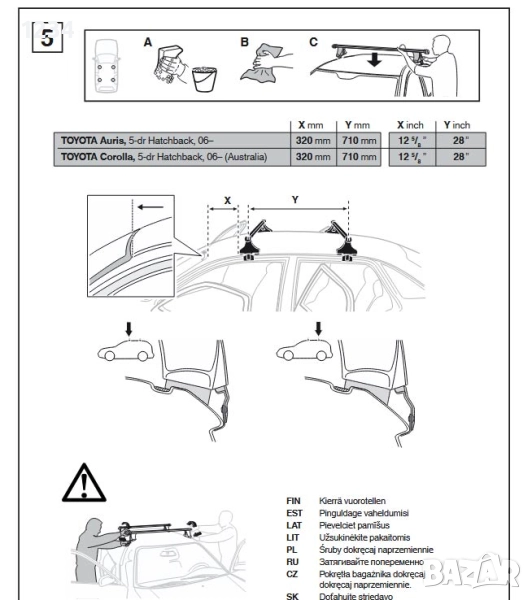 Багажник напречни греди THULE рейки за TOYOTA Auris Corolla → Обява 51885055