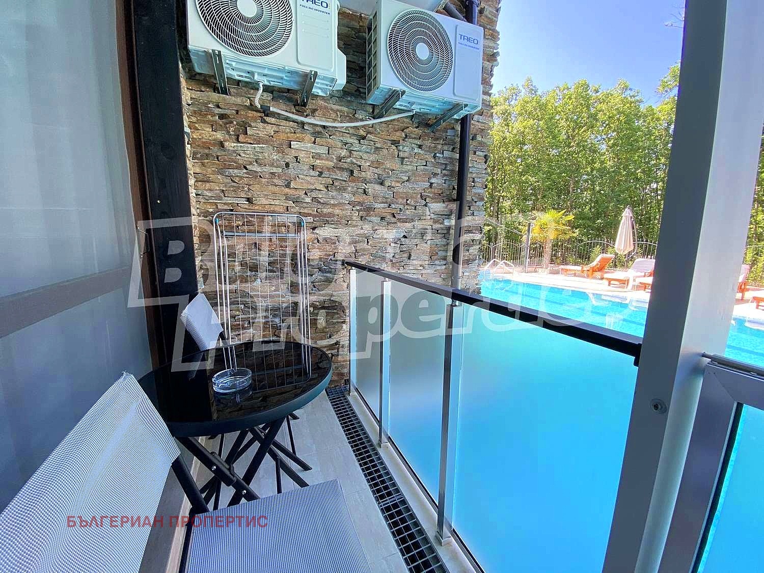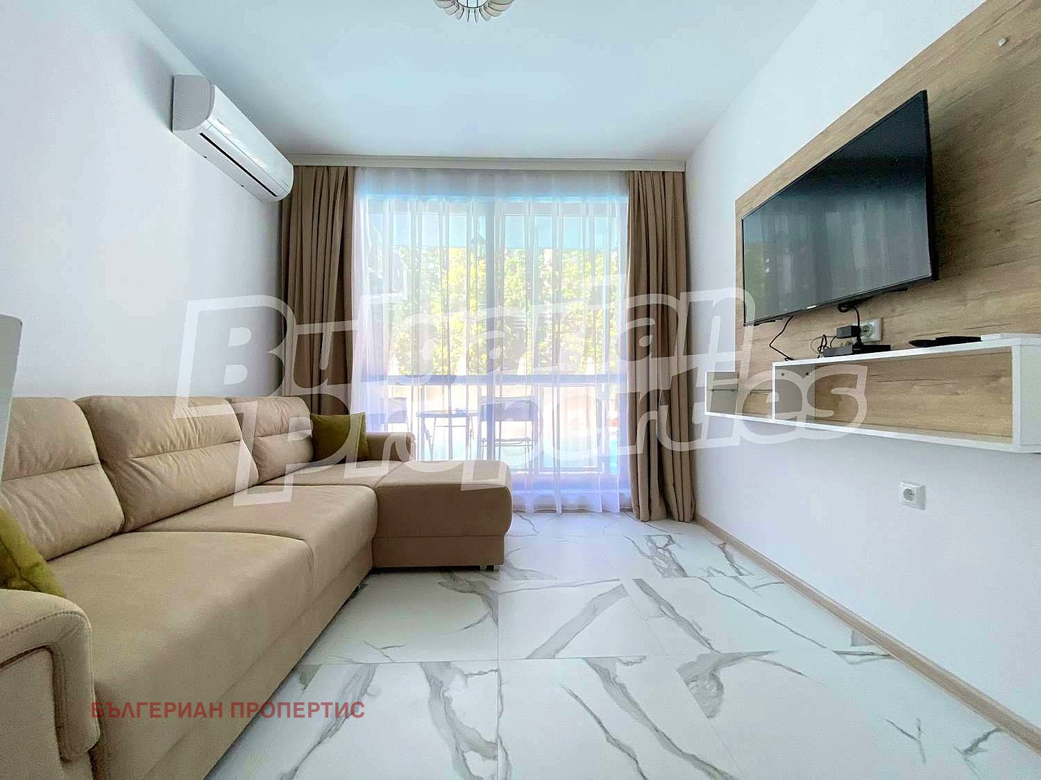Имотът се намира първи етаж, разполага с тераса, от която има директен достъп до големия басейн на комплекса. Апартаментът е със северно изложение, като на терасата се излиза от дневната - прекрасно място за отдих за всички обичащи тишината и уединението. В дневна са оформени три зони: кухня, трапезария и дневна зона за почивка. Имотът разполага с входно антре, дневна, спалня, тераса и напълно оборудвана баня абсолютен комфорт за отличен отдих.