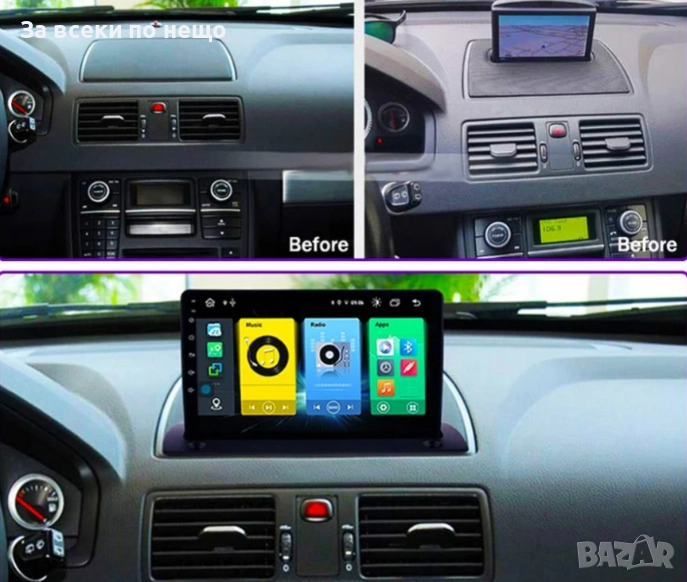 Модерна 9-инчова мултимедия с камера и рамка за Volvo XC90 (2002–2014). Съвместима с CarPlay, Android Auto, Bluetooth, GPS, WiFi и др.