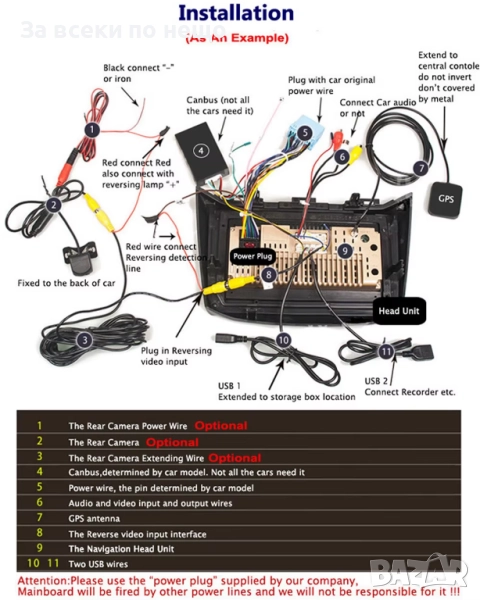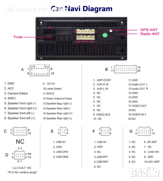 Инсталацията е лесна и запазва оригиналния вид на таблото. Поддържа камера за заден ход, управление от волана (CANBUS) и възпроизвеждане на мултимедия от външни носители.