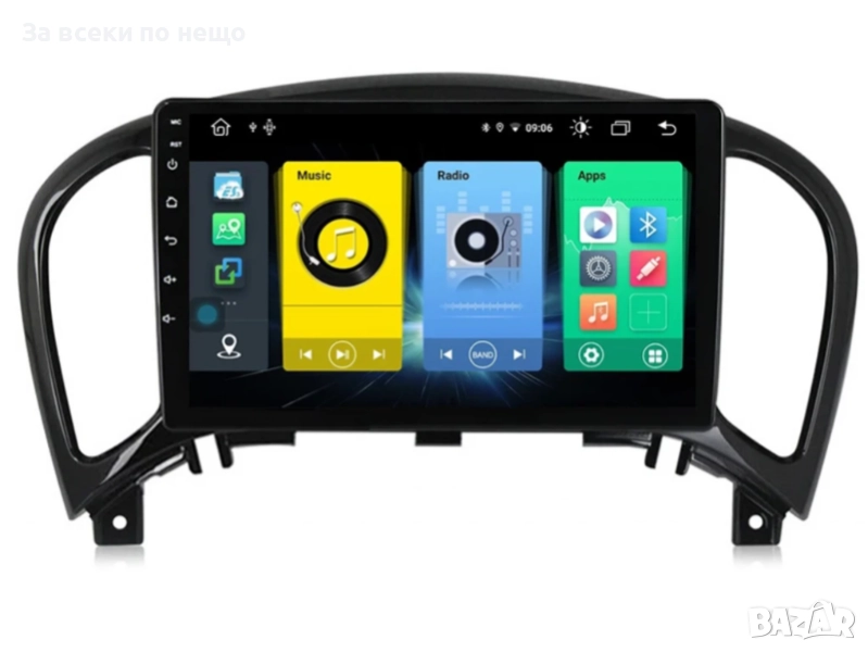 Мултимедия за Nissan Juke (2010–2019) с 9" екран, GPS, CarPlay, Android Auto и подарък камера. Бърз интерфейс, лесен монтаж, съвременен дизайн.