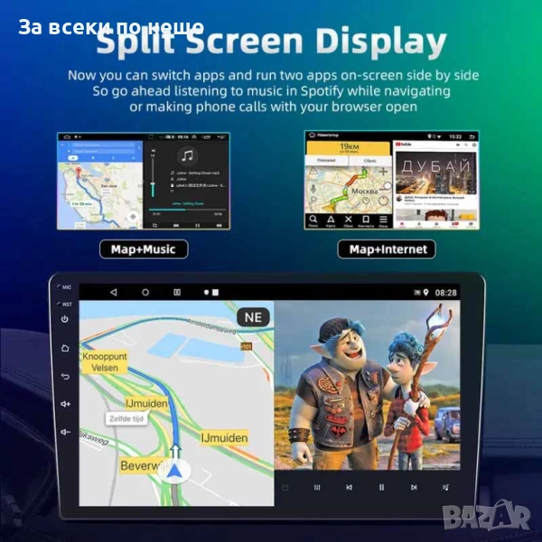 HD сензорният дисплей осигурява плавна работа и интуитивно управление, а мощният 4-ядрен процесор позволява използване на навигация, музика, видео и други приложения едновременно.