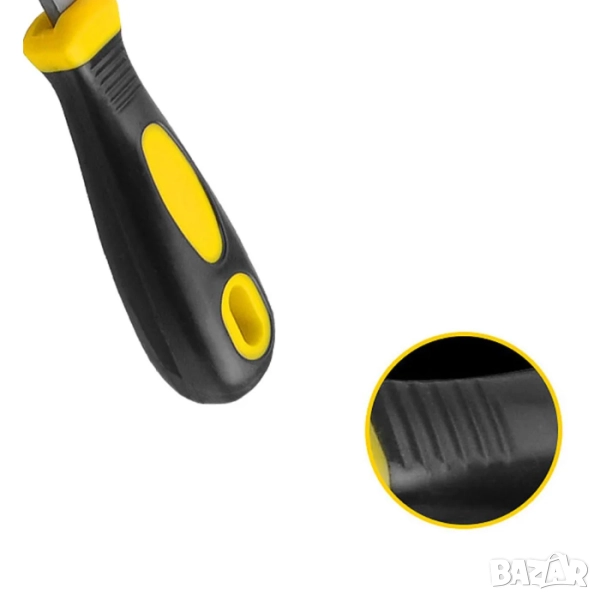 Дръжка: ергономична, изработена от удароустойчива пластмаса или дърво за стабилен захват.