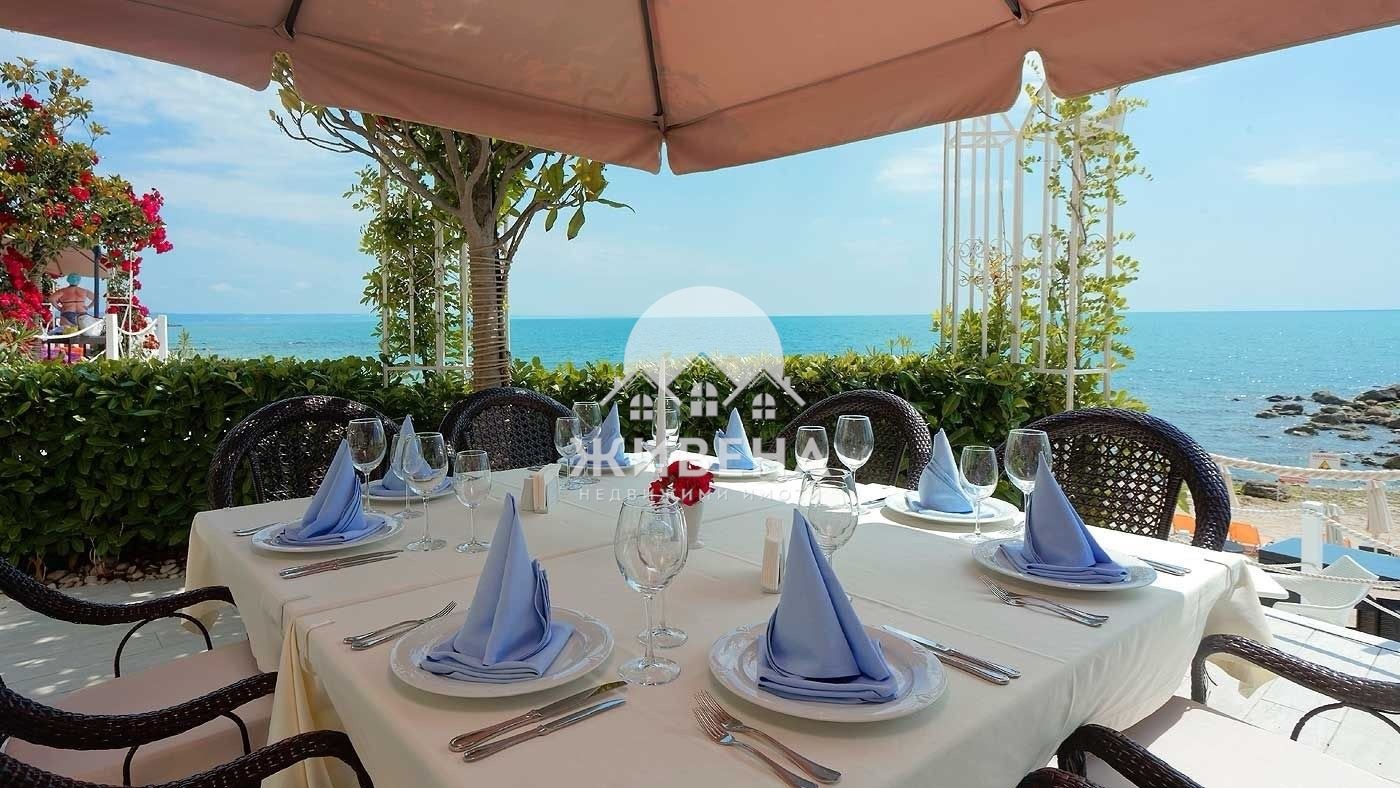 Агенция Живена предлага за продажба 3-стаен апартамент в комплекс на първа линия, с гледка море, зеленина и красивата територия на комплекса. Разположен е на 2-ри етаж, в затворен комплекс Ламер, до плаж Кабакум. Общата площ на имота е 134.82 кв.м, вкл. жилищна площ на апартамента - 104.29 кв.м, общи части 23.60 кв.м, маза - 6.96 кв.м. Състои се от дневна стая с кухня и излаз на тераса, две спални с излаз на втора тераса, две бани с тоалетни, килер/гардеробна стая, входно антре. Продава се в завършено състояние, до ключ. Има възможност за покупка или наемане на паркомясто. Комплексът разполага с уникално красива територия, с вечно зелена растителност, охрана, басейн, ресторант, рецепция, СПА център с фитнес, масажни кабинети, салон за красота, фризьорски салон, сауна, парна баня, зона за релакс, вътрешен басейн и външно джакузи, Такса поддръжка е 13.8 евро/кв.м. Агенция ЖИВЕНА извършва необходимите проверки на имота и организира всички етапи на сделката до нейното финализиране. Оказваме съдействие за отпускане на банков кредит. Оферта 7477