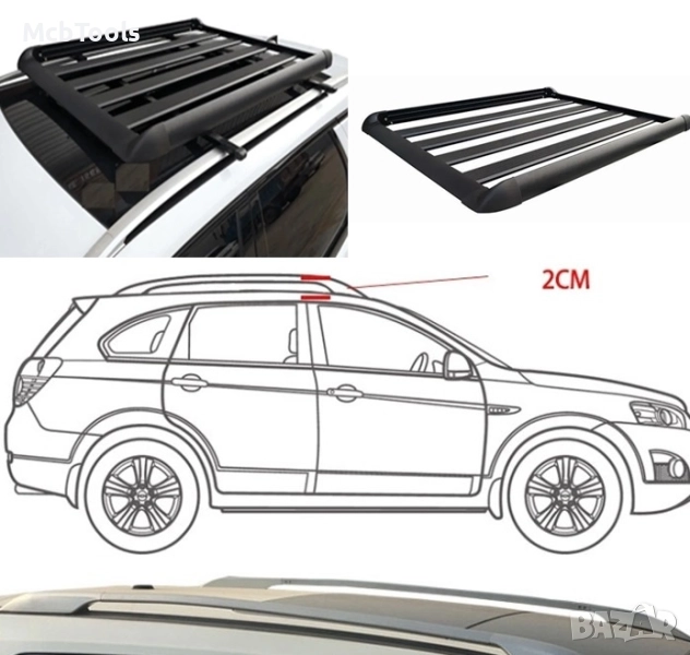 - Напречните греди за поставяне на багажника са подходящи за поставяне на автомобили които имат надлъжни греди с разстояние между тавана не по-малко от 2 см. Багажника има лесен монтаж и дръжки за удобно поставяне и пренасяне.