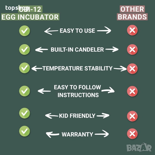 🌡️ Разширен контрол на температурата: OBI-12 се предлага с лесно за следване ръководство и дигитален панел, който показва точно температурата и влажността. Той се предлага с всичко необходимо за следващото ви излюпване: всичко, от което се нуждаете, са яйца!