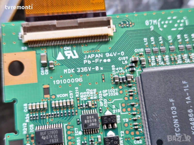 T-CON MDK336V-0n 19100096 за 32-инчов телевизор PANASONIC Модел TX-32LZD80F , с дисплей AX080F014A. Платката е използвана, но гарантирано работеща, демонтирана от телевизор със счупен дисплей. Тествана е от нашия техник.