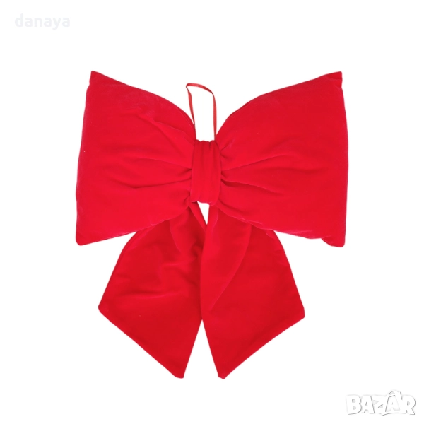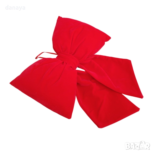 Голяма червена велурена панделка за коледна украса – ефектен празничен акцент за дома. Тази декоративна панделка е изработена от мек текстил (велур) и е с размер 29×33 см, което я прави идеална за украса на врата, камина, стена, прозорец или парапет. Подходяща е и като впечатляваща панделка за големи подаръци, както и за коледни фотосесии и празнични декорации.