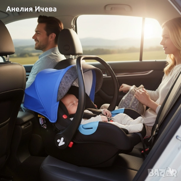 Столче за кола: група 0+, до 13кг, с регулируема дръжка и 3-точков колан;