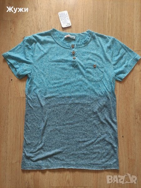 НОВА мъжка тениска ,синя,размер XS , цена 7 ,50 лв. СЛЕДВА страхотна блуза, размер XS, без никакви забележки ,като нова, много мека и приятна материя, цена 7,50 лв. СЛЕДВА мъжка блуза размер S,без забележки, цена 6,50 лв.