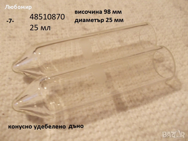 7. Стъклени епруветки 25 ml центрофуга - неизползвано - 12 бр. х 4 лв.