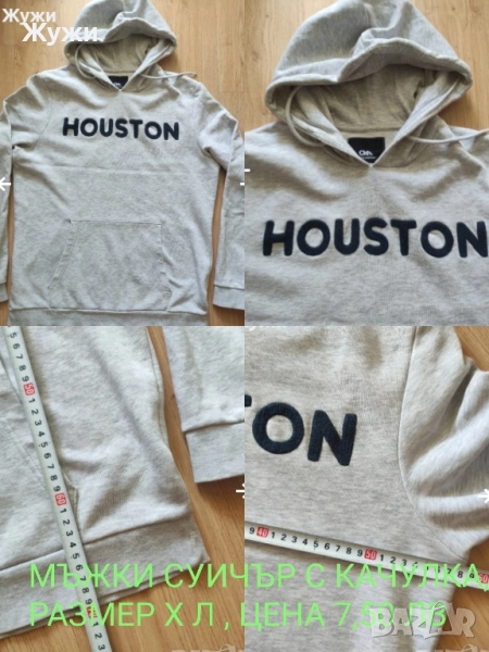 СТРАХОТЕН мъжки суичър с зелена качулка наситено черен цвят без забележки цена 8,50 лв. Мъжки суичър с качулка, размер XL, без забележки , има дадени размери. цена 7,90 лв. СЛЕДВА мъжка блуза, размер ХЛ ,цена 6,90 лв. МЪЖКА блуза ,размер ХЛ ,с качулка и надписи,,без забележки, цена 7,90 лв.ЧЕРНА мъжка блуза размер ХЛ,без забележки, цена 6,90 лв. СТРАХОТЕН мъжки суичър, без никакви забележки, размер ХЛ,цена 7,90 лв. СЛЕДВА мъжка тениска без забележки цена 5,90 лв.
