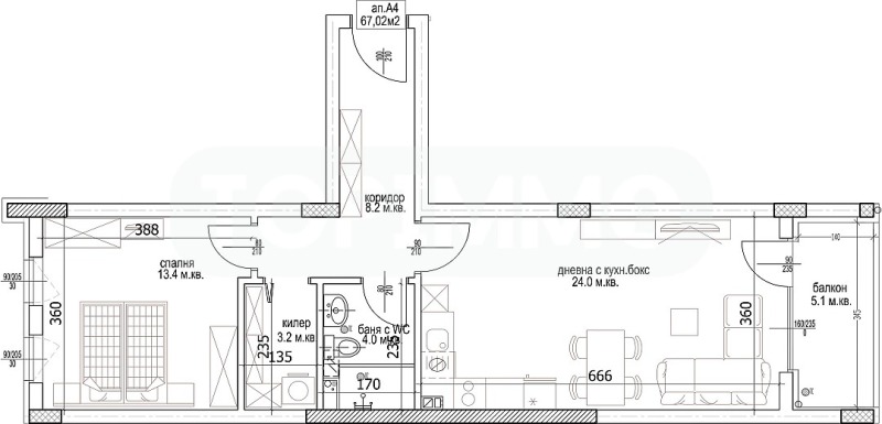 ТОПИММО предлага за продажба двустаен апартамент А4 в новостроящ се луксозен комплекс в кв. Кайсиева градина. Строителната компания е утвърдена и доказала се на пазара с над 20 завършени и продадени обекта в град Варна.