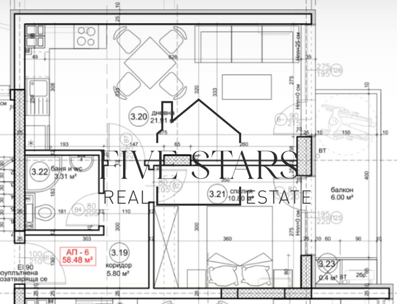Файв Старс недвижими имоти предлага за продажба двустаен апартамент състоящ се от :